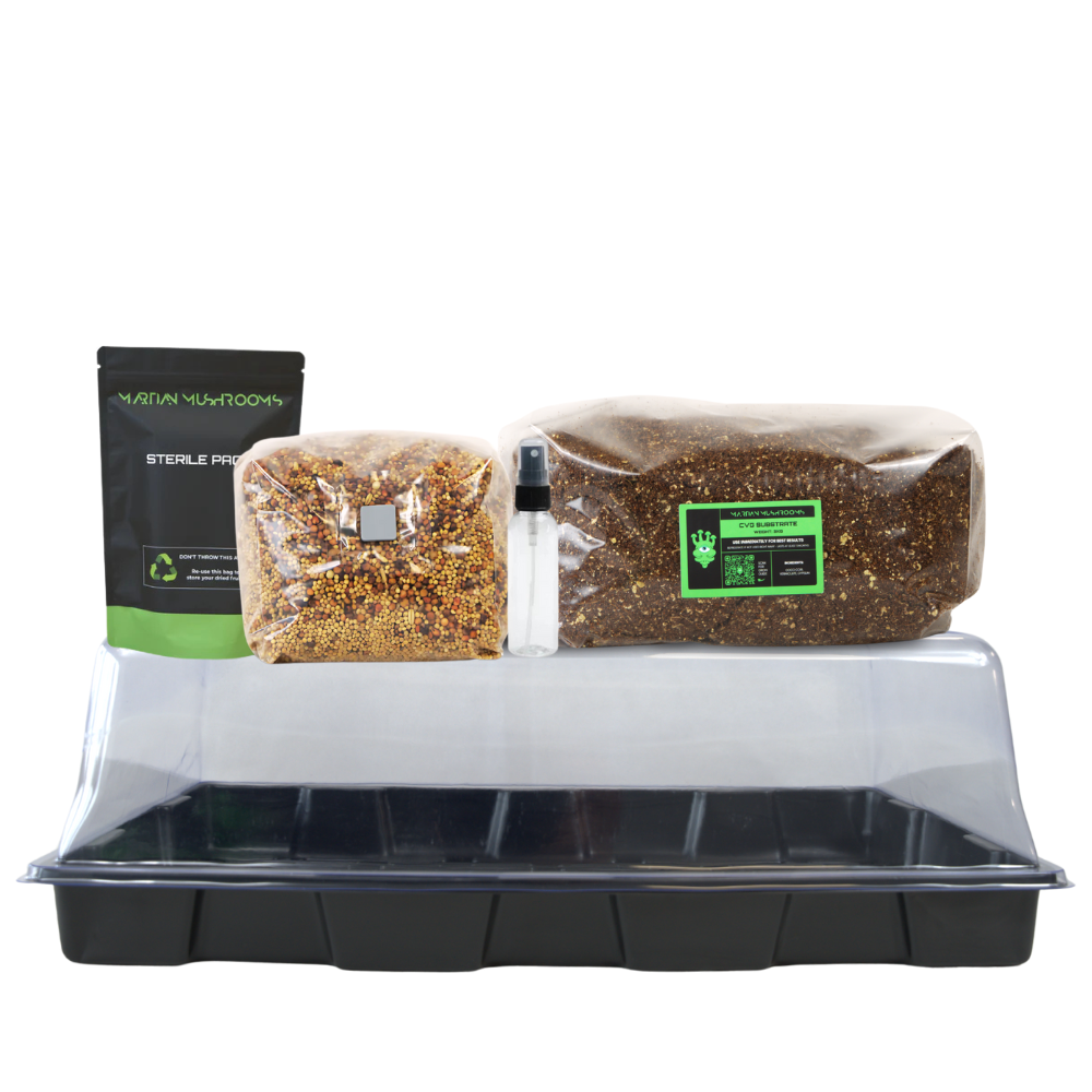 You don’t need any expensive lab equipment to get started with this kit. We do all the hard work by pre-preparing everything you need – from sterilised grain spawn, premium CVG bulk substrate, a Martian MonoTub and essential supplies. This kit allows for a more advanced cultivation process, giving you greater control over each stage of growth while still reducing the risk of contamination. Perfect for growers ready to take their cultivation skills to the next level and harvest their biggest yields yet.